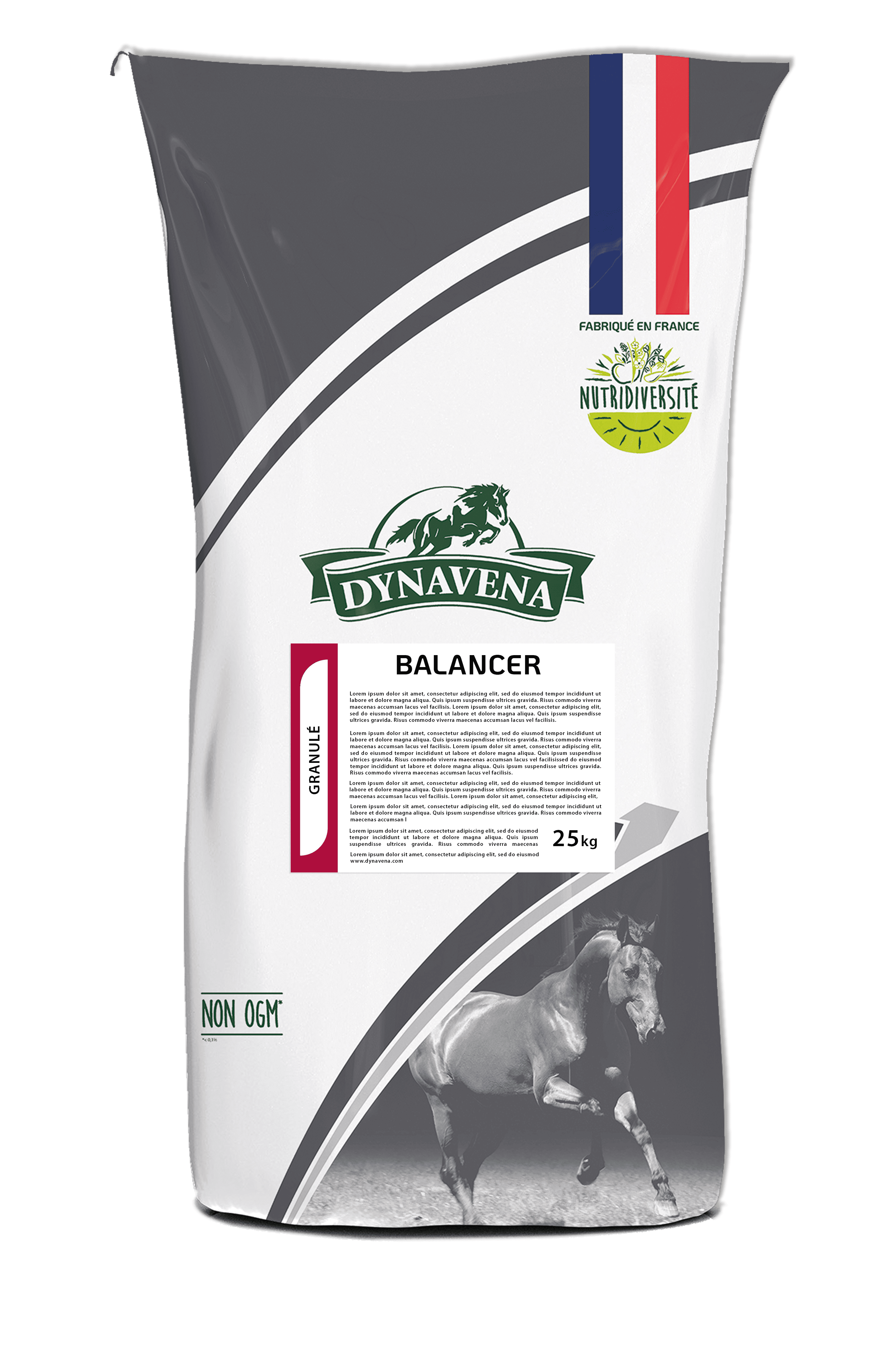BALANCER est un aliment concentré destiné à compléter les rations des chevaux recevant peu de concentrés ou ayant besoin d’un apport ciblé. Riche en protéines de qualité, vitamines et oligo-éléments, il convient parfaitement aux chevaux sujets au surpoids, au métabolisme fragile ou nourris essentiellement au foin.