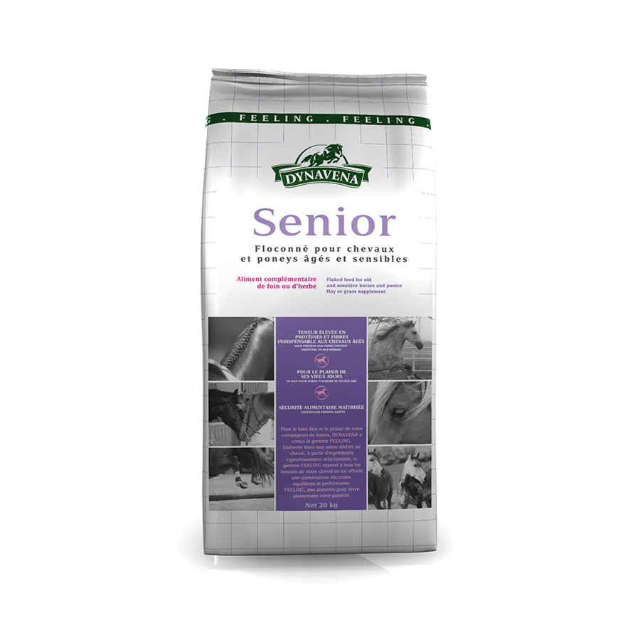 Le Dynavena Feeling Senior est un aliment floconné fibreux, spécialement formulé pour les chevaux et poneys âgés, au repos ou présentant des troubles digestifs ou dentaires. Sa richesse en fibres de luzerne en l’état favorise la mastication et améliore la digestion. Enrichi en spiruline, il soutient le système immunitaire des équidés âgés. Ce produit est complémentaire de foin ou d’herbe, assurant une alimentation équilibrée et adaptée aux besoins spécifiques des chevaux seniors.