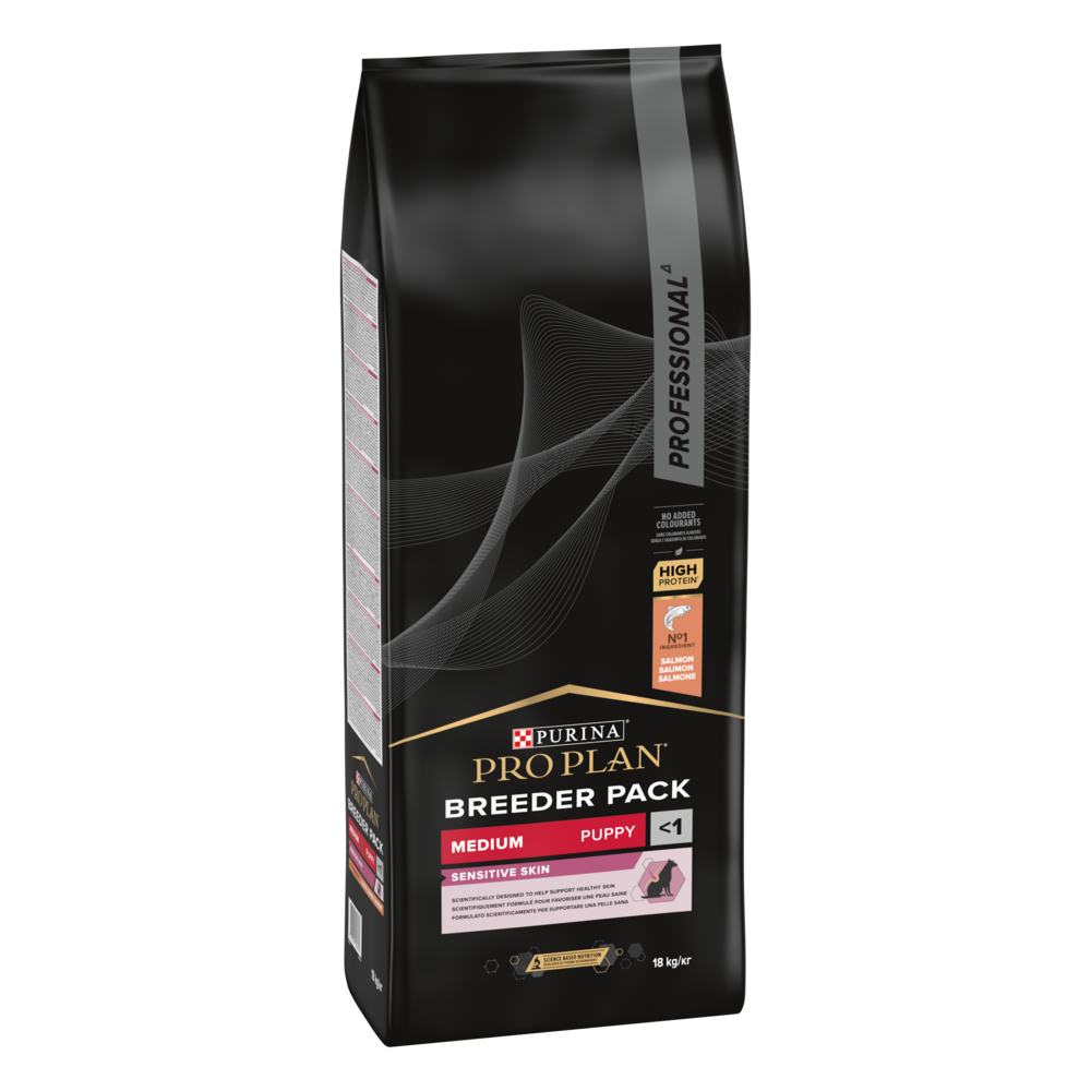 Les croquettes pour chien PRO PLAN PUPPY MEDIUM SENSITIVE SKIN aident à maintenir une peau saine et un beau pelage et aident à réduire les réactions cutanées associées à la sensibilité alimentaire grâce à une combinaison de nutriments spécialement sélectionnés.