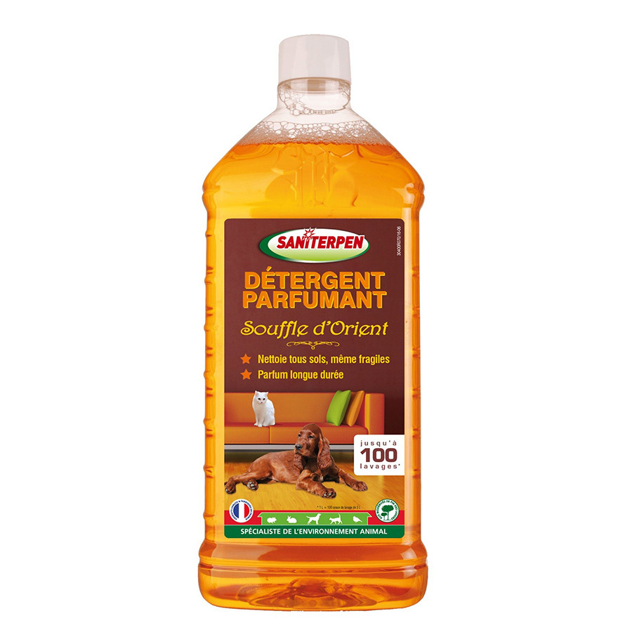 Saniterpen Détergent Parfumant Souffle d’orient, nettoie et parfume tous types de sols et surfaces des lieux fréquentés par les animaux de compagnie (chiens, chats,...).