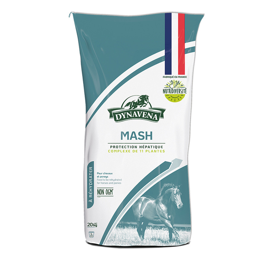 Le MASH de Dynavena est un aliment à réhydrater conçu pour stimuler le transit intestinal et protéger le foie des chevaux et poneys. Sa composition unique, incluant un complexe de 11 plantes, des fibres de pomme, des Oméga 3, de la carotte, des algues et des flocons, en fait un repas rafraîchissant et relaxant. Avec une teneur élevée en matières grasses (7,5%), il favorise également la récupération et agit comme un reconstituant. Ce produit est complémentaire des concentrés et du fourrage, offrant une alimentation équilibrée.