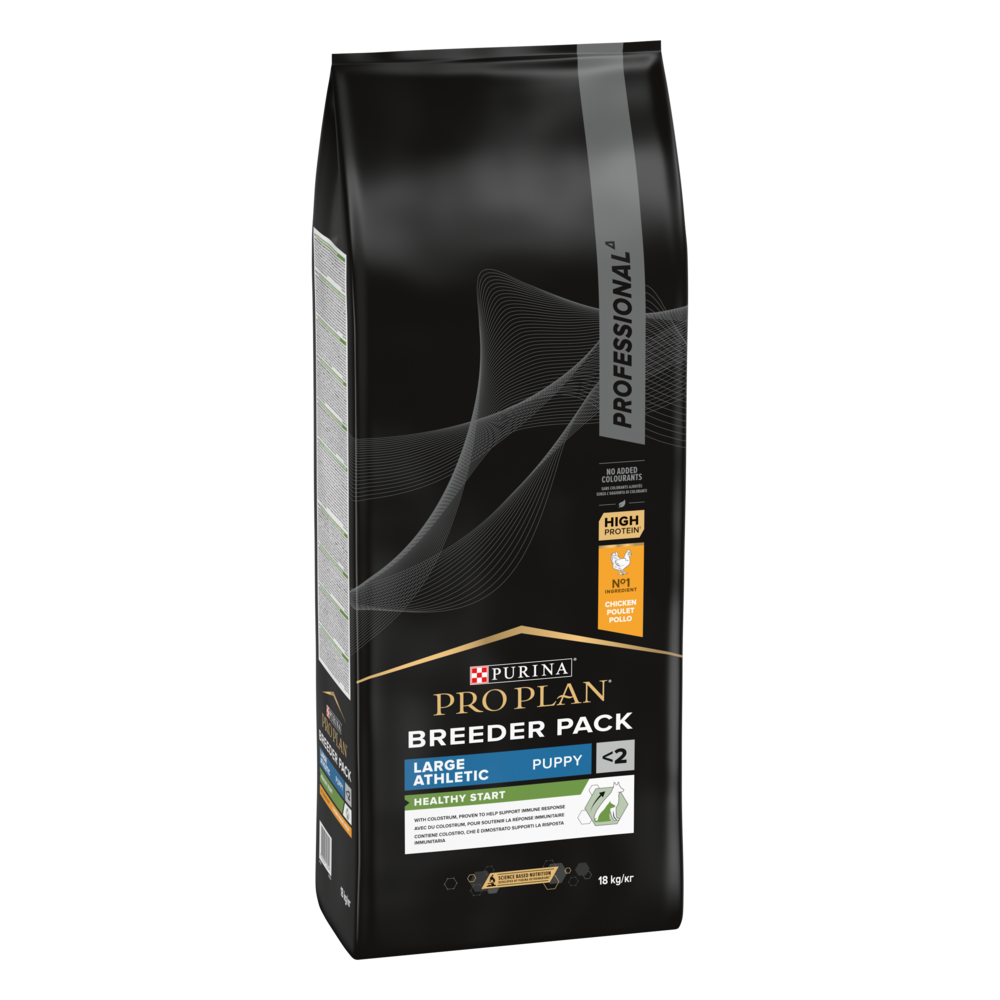 Les croquettes PRO PLAN DOG PUPPY LARGE ATHLETIC contiennent du colostrum qui permet au système immunitaire des chiots de répondre efficacement grâce à ses molécules bioactives. Il aide à améliorer la réponse immunitaire à la vaccination.