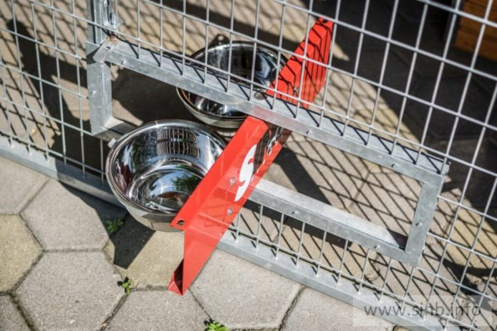 Peut être installée dans les éléments en maille, la structure rotative convient pour deux bols, ce qui permet de nourrir et de fournir de l’eau au chien depuis l’extérieur du chenil.